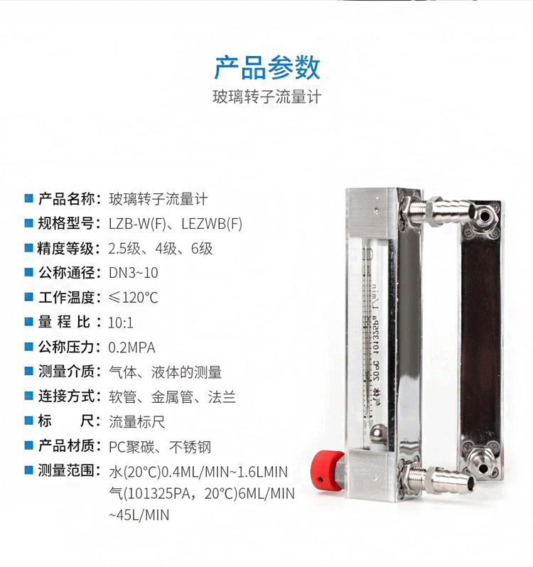 2. 流量計本身性能。根據自身的管道尺寸及現場環(huán)境,可選擇流量計安裝方式,一般玻轉有面板式安裝及垂直安裝兩種,連接方式多樣。如果是小流量范圍,可選用球浮子式,因它測量時穩(wěn)定、不易積塵、精度較高、互換性好。